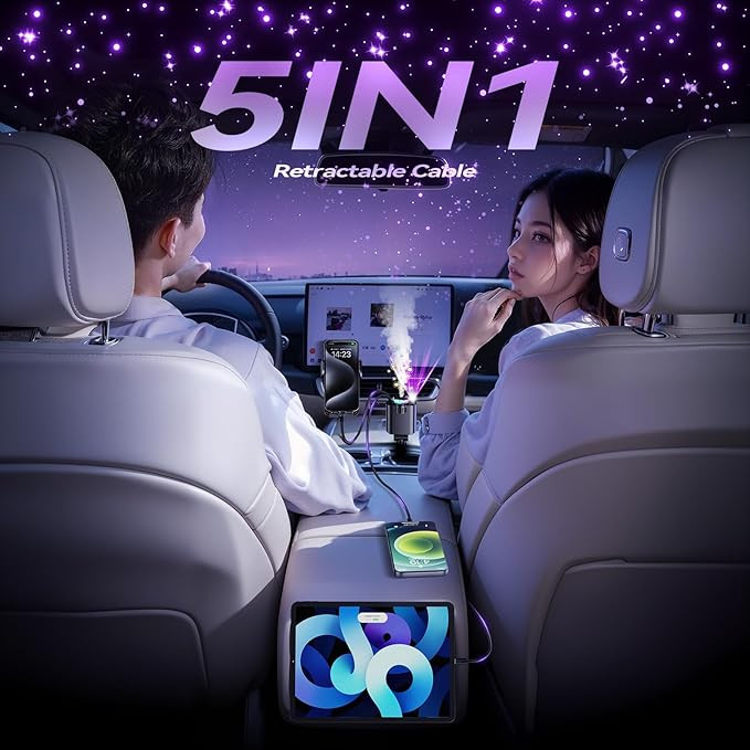 شارژر فندکی Starlight Car Charger 5in1 یک محصول چندمنظوره و کاربردی برای خودرو است که علاوه بر شارژ سریع و ایمن دستگاههای شما، امکانات بیشتری را هم در اختیارتان میگذارد. این دستگاه مجهز به پورت Type-C و USB با قابلیت شارژ سریع (PD 3.0 ) است و میتواند همزمان چند دستگاه را با سرعت بالا شارژ کند. از ویژگیهای خاص این شارژر میتوان به انتشار عطر خوشبوکننده، نورپردازی LED سقف کهکشانی و طراحی مدرن اشاره کرد که علاوه بر کاربردی بودن، جلوه زیبایی به داخل خودرو میدهد. با این محصول، شما در واقع ۵ وسیله را در قالب یک دستگاه در اختیار خواهید داشت .